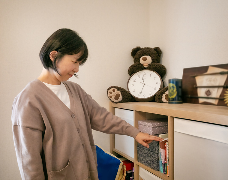 引越し前は「荷物が多いけれど、全部持ち込めるだろうか」と心配されていたご主人様。しかし、各居室や廊下に設けられた多彩な収納や、便利なウォークインクローゼットが大活躍。ロフトはご主人様の趣味であるカメラ機材などの収納に重宝されているそうです。
