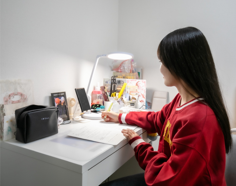 お子様二人の「絶対条件」だったそれぞれの個室も実現。そして広々としたキッチンは、動きやすさや作業のしやすさなどの使い勝手に優れ、ストレスなく家事ができるお気に入りの空間に。奥様にはたくさんのレシピメモがあり、ときどきお手伝いをしてくれるお子様二人に“わが家の味”がしっかり受け継がれていくことでしょう。